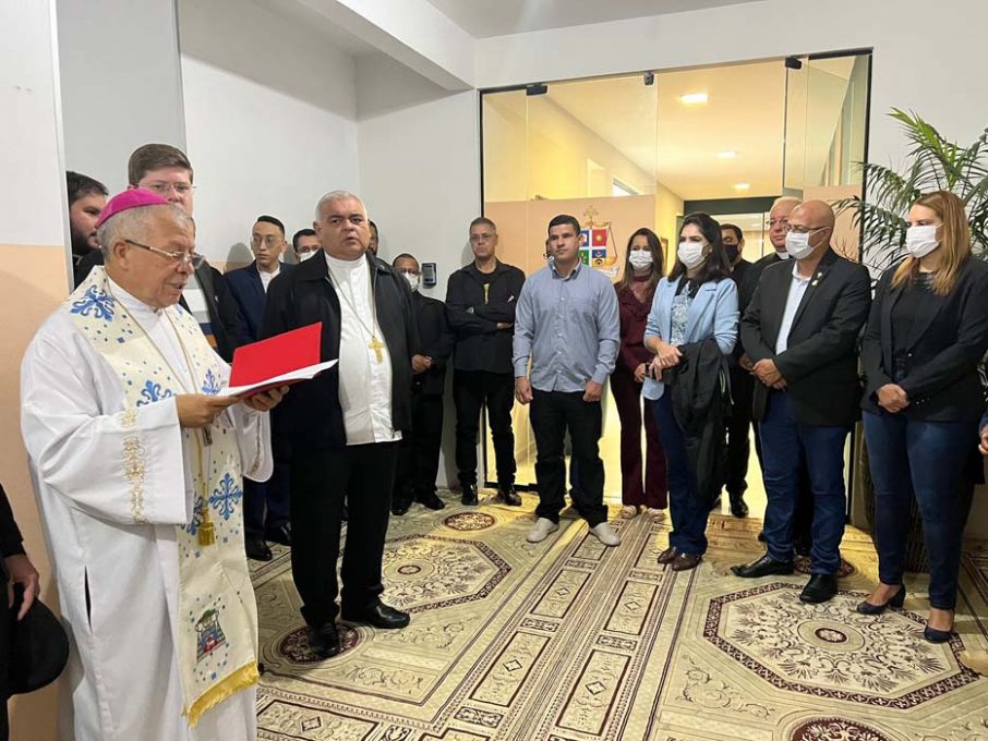 No início da manhã desta quinta-feira (15), a prefeita Sheila Lemos participou da solenidade de bênção das instalações canônicas do Tribunal Interdiocesano de Vitória da Conquista. Localizado na Galeria Dom Climério (Centro), o tribunal é responsável pela atribuição judicial da Igreja Católica, examinando, discutindo e decidindo assuntos de competência da igreja, a exemplo de nulidade de casamentos, aplicando para isso a lei e o direito eclesiástico.