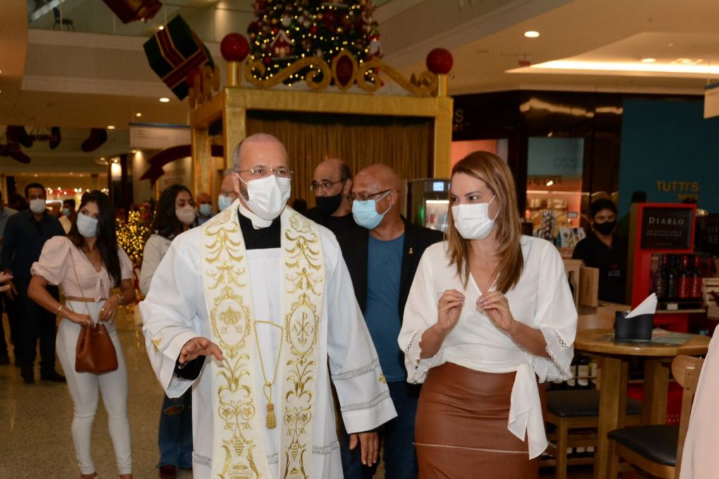 Convidada pela administração do centro comercial, a prefeita Sheila Lemos prestigiou, na tarde desta sexta-feira (5), a inauguração da ornamentação natalina do Boulevard Shopping, com destaque para um lindo presépio, que recebeu a bênção do padre Ariosvaldo Aragão.
