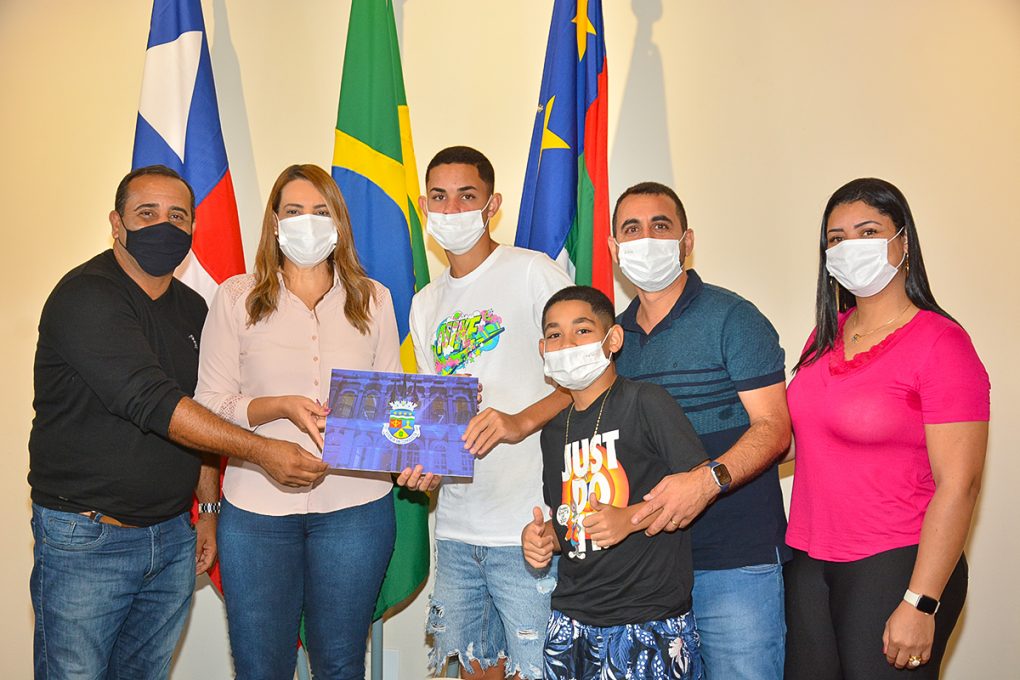 Na ocasião, o vereador Ricardo Babão entregou uma moção de aplauso aprovada pela Câmara de Vereadores.ao atleta, que estava acompanhado dos pais, Wilker e Nadiely, e do irmão Otávio.