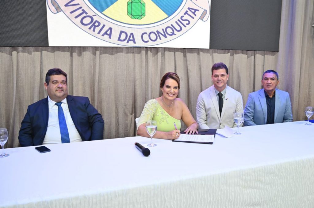 Após um mandato de quatro anos que começou como vice e seguiu para a condição de gestora do terceiro maior município da Bahia, Sheila Lemos é empossada nesta primeira quarta-feira de 2025 como primeira prefeita eleita de Vitória da Conquista. A cerimônia, realizada no Grand Hall, também deu posse ao vice-prefeito, Aloisio Alan, aos 23 vereadores eleitos para compor a Câmara Municipal nos próximos quatro anos, além do secretariado municipal.
