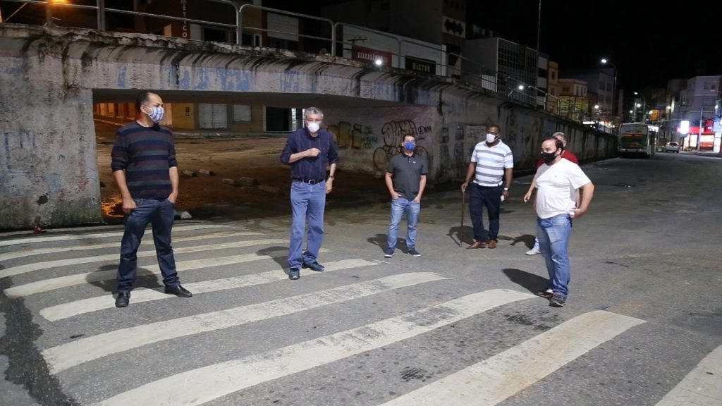 Na noite desta terça-feira (26), o prefeito Herzem Gusmão compareceu ao Centro de Vitória da Conquista para inspecionar as obras da nova Estação de Transbordo da Avenida Lauro de Freitas e checar os locais onde serão instalados os abrigos temporários na Avenida Régis Pacheco, próximos ao Viaduto Pedral Sampaio.