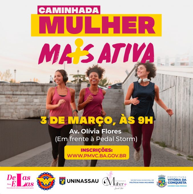 Estão abertas as inscrições da caminhada Mulher Mais Ativa, promovida pela Prefeitura de Vitória da Conquista, por meio da Secretaria Municipal de Políticas para Mulheres.