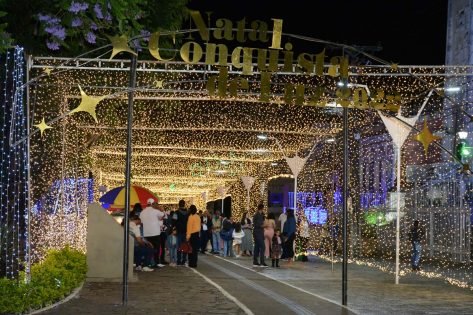 As luzes de Natal da Praça Tancredo Neves foram acesas no início da noite deste domingo (20), após contagem regressiva comandada pela prefeita Sheila Lemos e acompanhada com expectativa por centenas de pessoas. Com a antecipação da iluminação especial, conquistenses e visitantes poderão aproveitar, por um período maior, o brilho e encanto das 960 mil micro lâmpadas, cuidadosamente instaladas na praça.