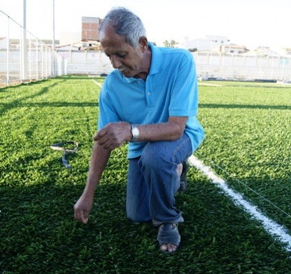 Agora, uma camada de grama sintética está sendo aplicada e em breve ocupará toda a extensão do campo. Como os jogadores do passado costumavam fazer antes das partidas, Firmino se abaixou e sentiu a grama entre os dedos. Bem diferente da terra batida com que se acostumou em seus tempos de jogador. “É uma beleza, né?”, comentou ele. “A idade já chegou e não dá para jogar novamente. As pernas não aguentam mais. Mas bem que eu tinha vontade…”