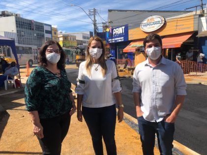 Na manhã desta terça-feira (1º), a prefeita Sheila Lemos, acompanhada da secretária de Mobilidade Urbana, Tônia Viana Rocha, e do diretor-presidente da Empresa Municipal de Urbanização de Vitória da Conquista (Emurc), Diêgo Gomes, vistoriou a obra de melhorias que estão sendo feitas na Rua da Misericórdia, no trecho que fica entre a Avenida Régis Pacheco e a Rua Francisco Andrade. Hoje foi colocada a nova pavimentação asfáltica no local. A obra, executada pela Emurc, contempla o ponto 4 de táxi, que antes ficava na avenida Régis Pacheco, além de possibilitar aos vendedores ambulantes, realocados da área do antigo terminal de ônibus, um local de trabalho com grande potencial.