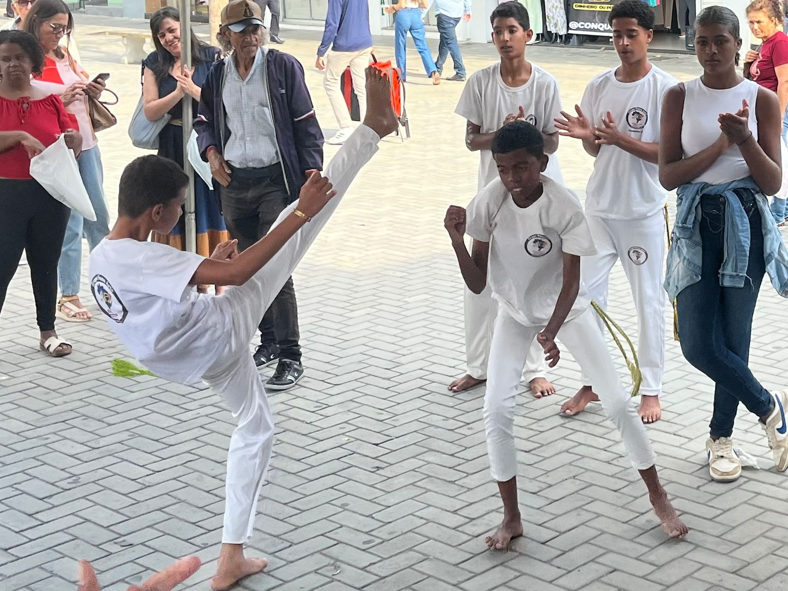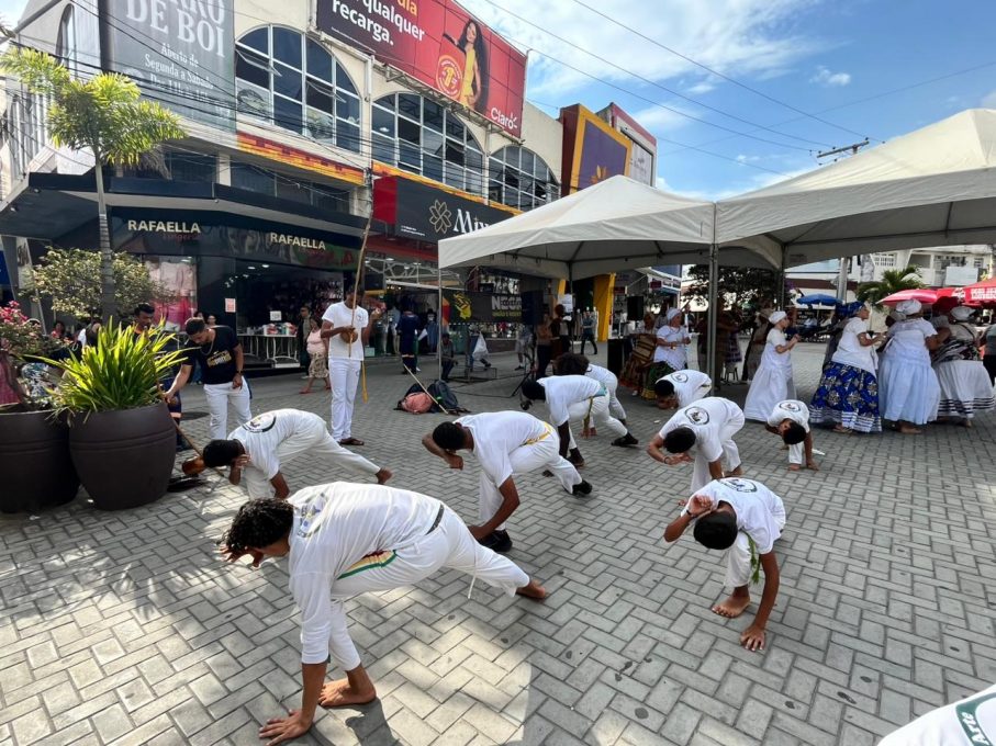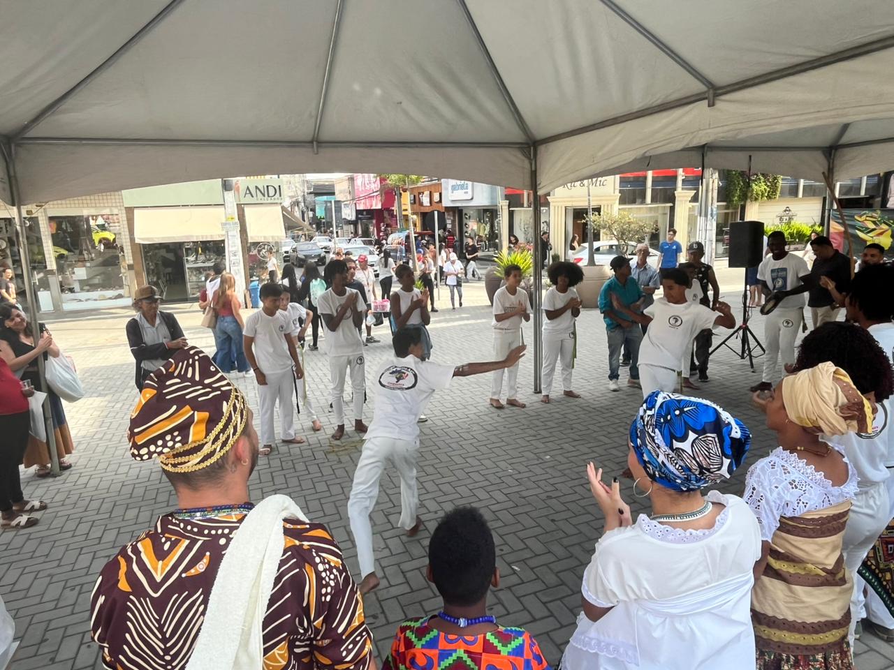 Em seguida, o grupo de capoeira Nossa Arte animou o público com apresentações de capoeira e samba de roda. Para o professor Henrique Silva, a presença do grupo no evento reforça a ancestralidade da cultura afro-brasileira. “Nossa apresentação mostra que a capoeira precisa ocupar as ruas, os espaços públicos. É assim que mantemos viva nossa cultura e garantimos que essa história continue sendo contada. Precisamos sair dos espaços fechados e ocupar as ruas”, destacou.