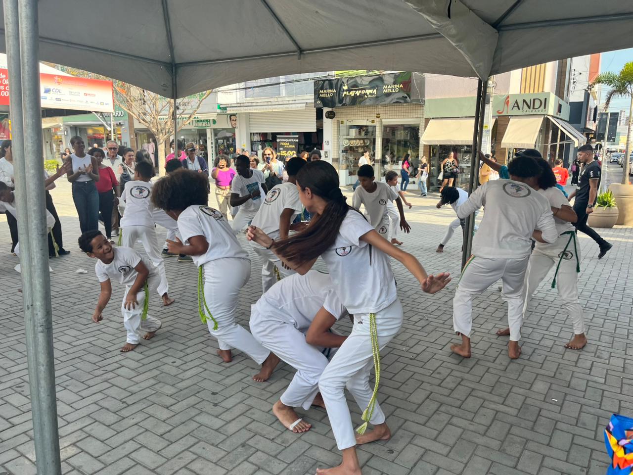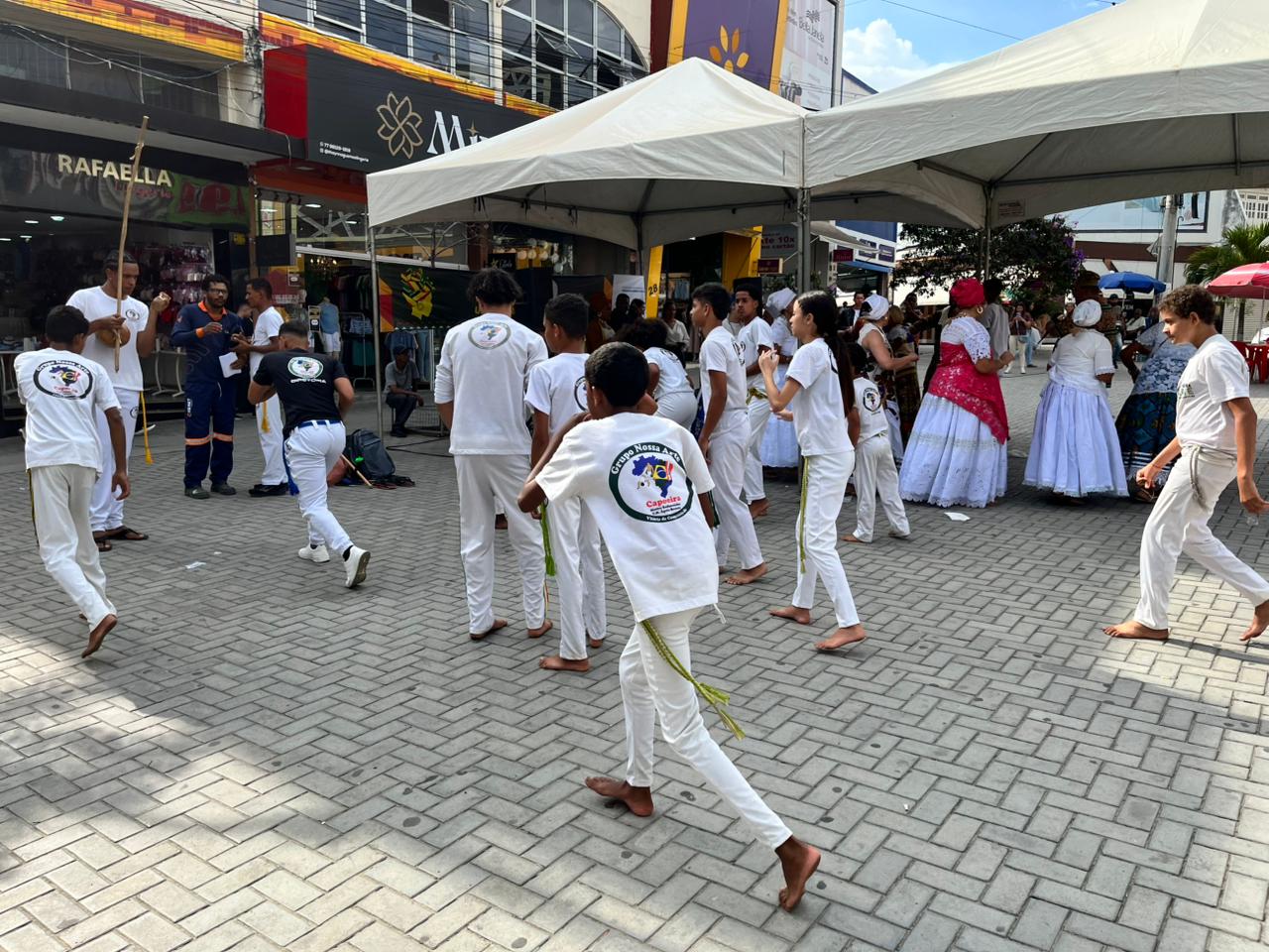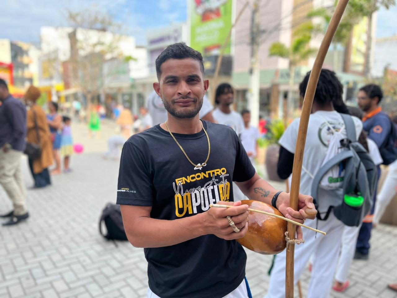 Em seguida, o grupo de capoeira Nossa Arte animou o público com apresentações de capoeira e samba de roda. Para o professor Henrique Silva, a presença do grupo no evento reforça a ancestralidade da cultura afro-brasileira. “Nossa apresentação mostra que a capoeira precisa ocupar as ruas, os espaços públicos. É assim que mantemos viva nossa cultura e garantimos que essa história continue sendo contada. Precisamos sair dos espaços fechados e ocupar as ruas”, destacou.