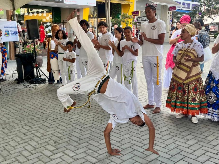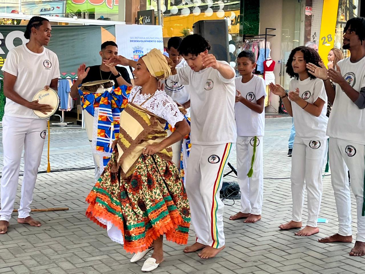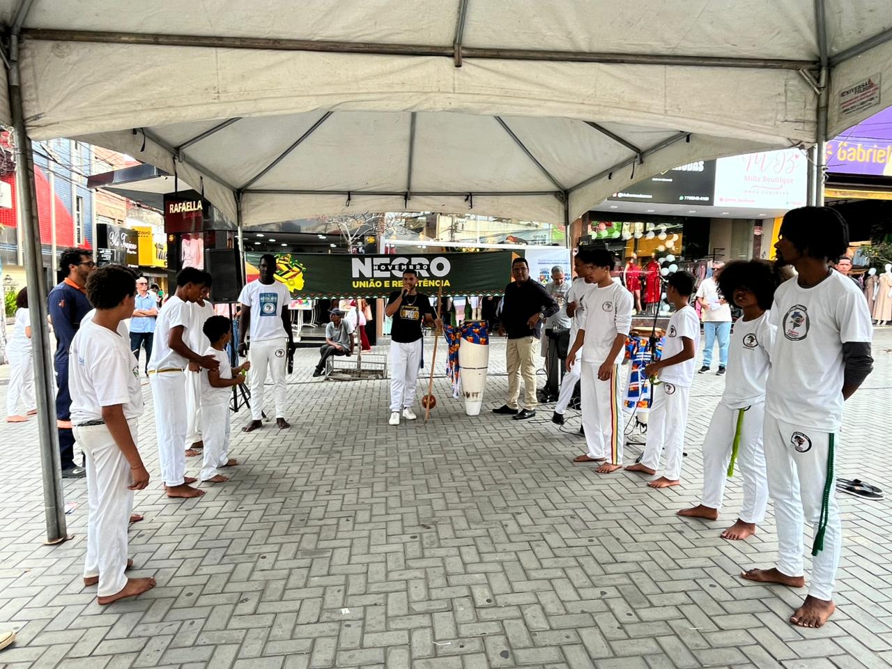 Dando continuidade à programação da campanha Novembro Negro, a Prefeitura de Vitória da Conquista promoveu uma tarde dedicada à valorização da cultura afro-brasileira e ao fortalecimento das ações de resistência da comunidade negra. As atividades aconteceram na Praça Nove de Novembro, na tarde de quarta-feira (19) e reuniram apresentações de capoeira, samba de roda, terno de reis e uma saudação religiosa. As ações celebram o Dia da Consciência Negra, que ocorre no dia 20 de novembro. Neste ano, a campanha destaca o tema “União e Resistência”.
