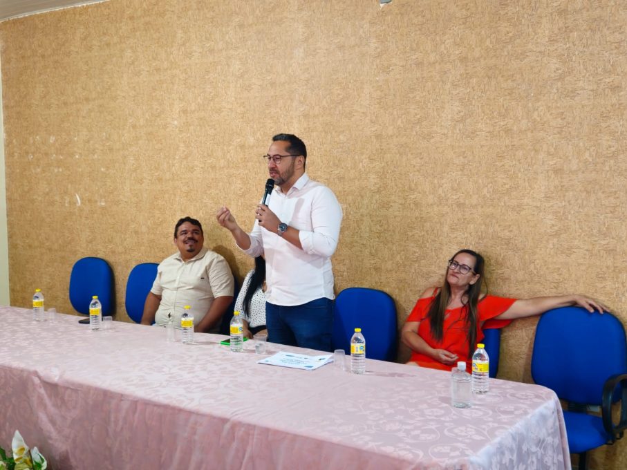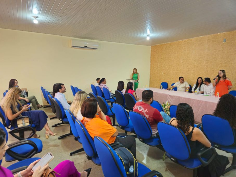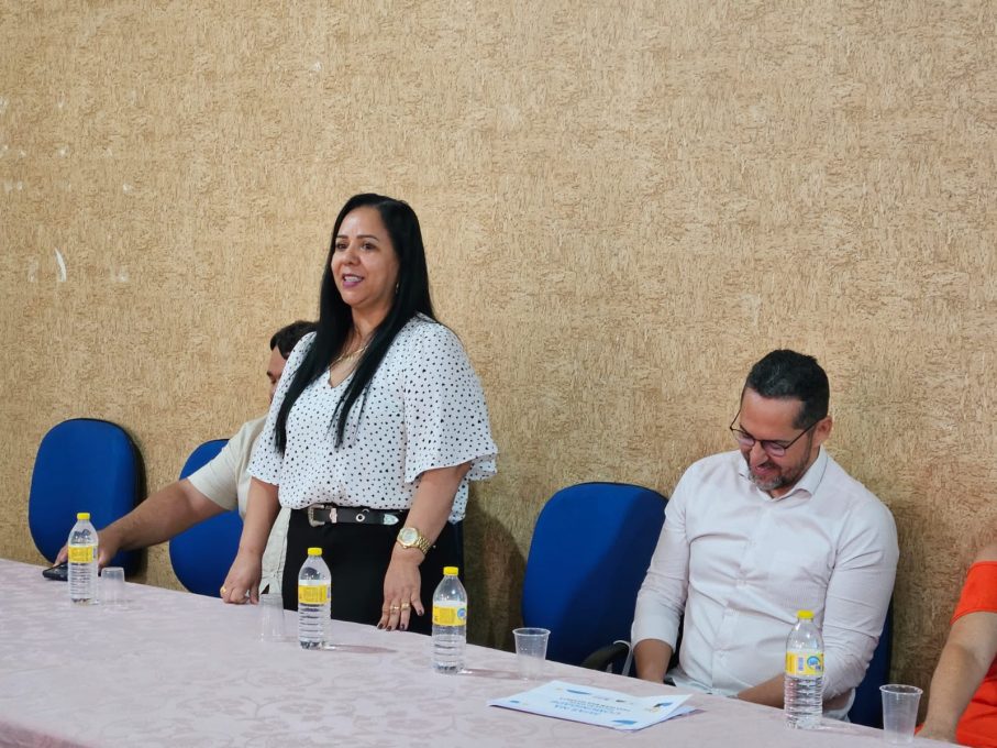 A mesa de abertura do evento teve a participação do presidente do Conselho Municipal dos Direitos da Criança e do Adolescente (Comdica), Joabe Oliveira, da secretária de Política para Mulheres, Viviane Ferreira, do secretário de Desenvolvimento Social, Michael Farias, e da conselheira tutelar Rosemary Melo.