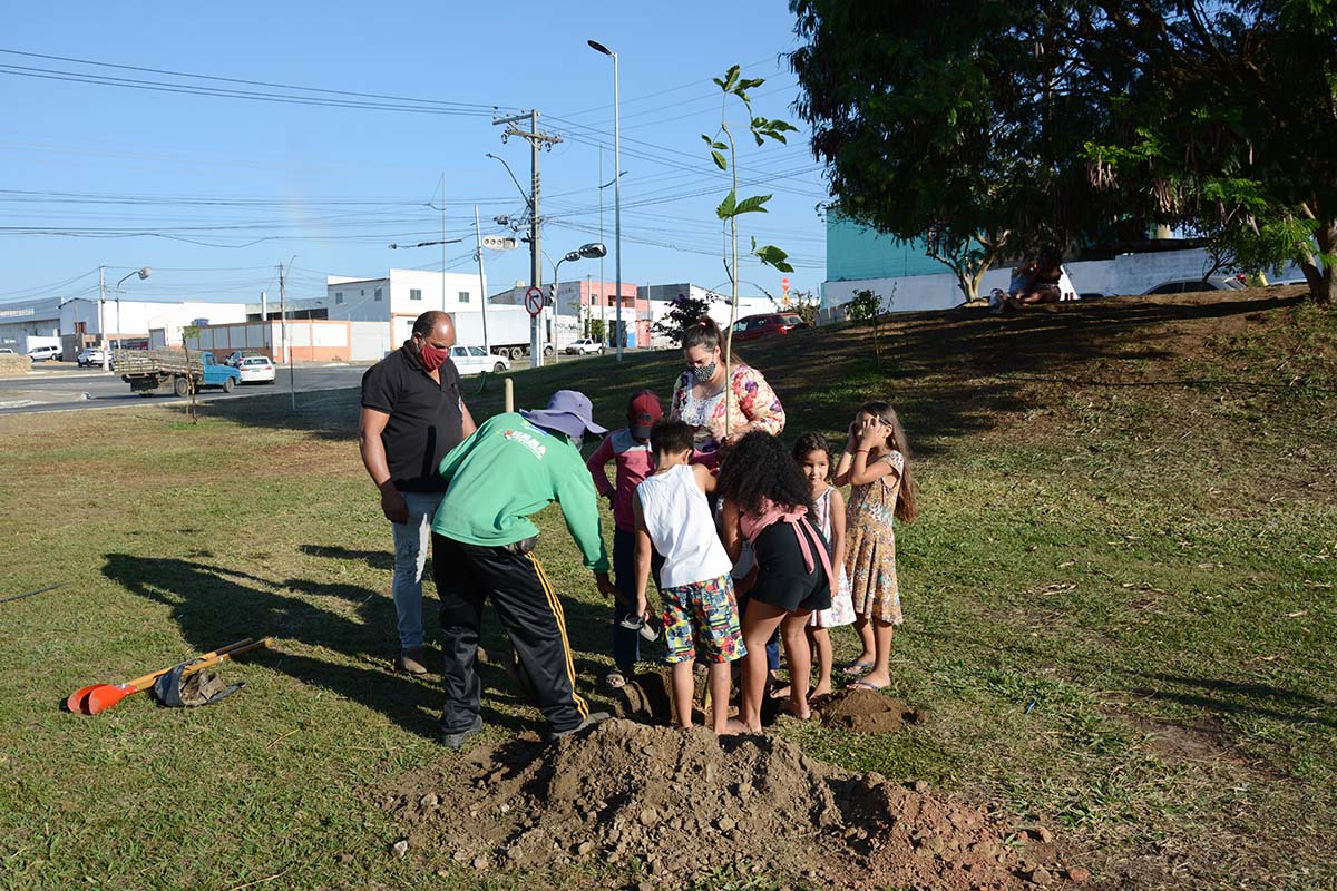 A atividade aconteceu na Praça Norberto Aurich e teve a participação de crianças que brincavam no local. “Esse é um momento simbólico, que marca também a chegada da primavera”, ressaltou a secretária de Meio Ambiente, Ana Cláudia Passos. A gestora explicou ainda que a espécie escolhida, o Ipê Rosa, além de ser uma planta nativa do município se destaca por sua beleza.