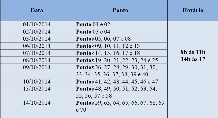 Confira o calendário de vistoria conforme a distribuição dos pontos de táxi: