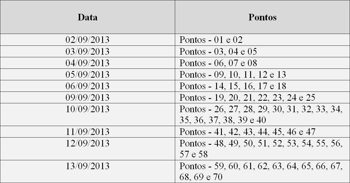 A vistoria ocorrerá na seguinte ordem: