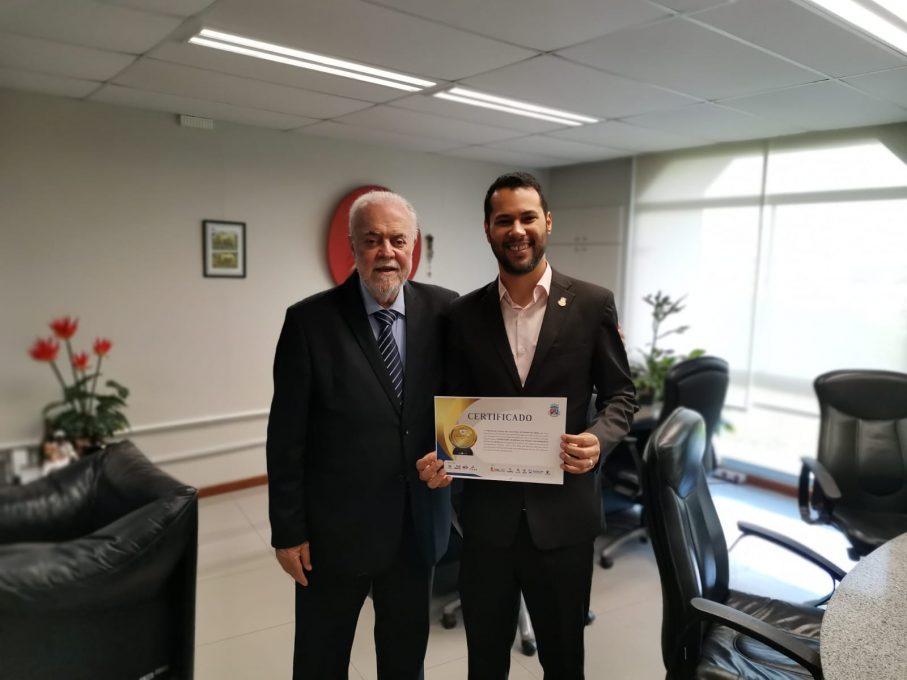 Selo foi entregue pelo presidente do TCM-BA, Francisco Netto, ao secretário Mateus Novais
