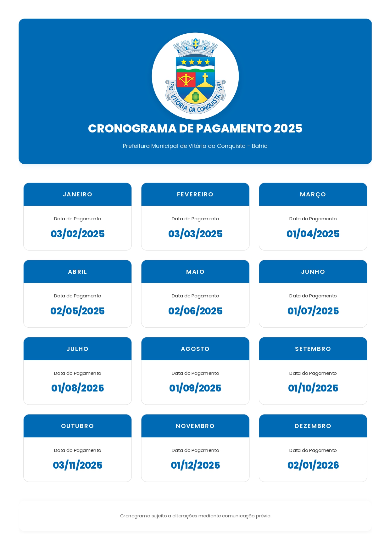 Cronograma de pagamento 2025