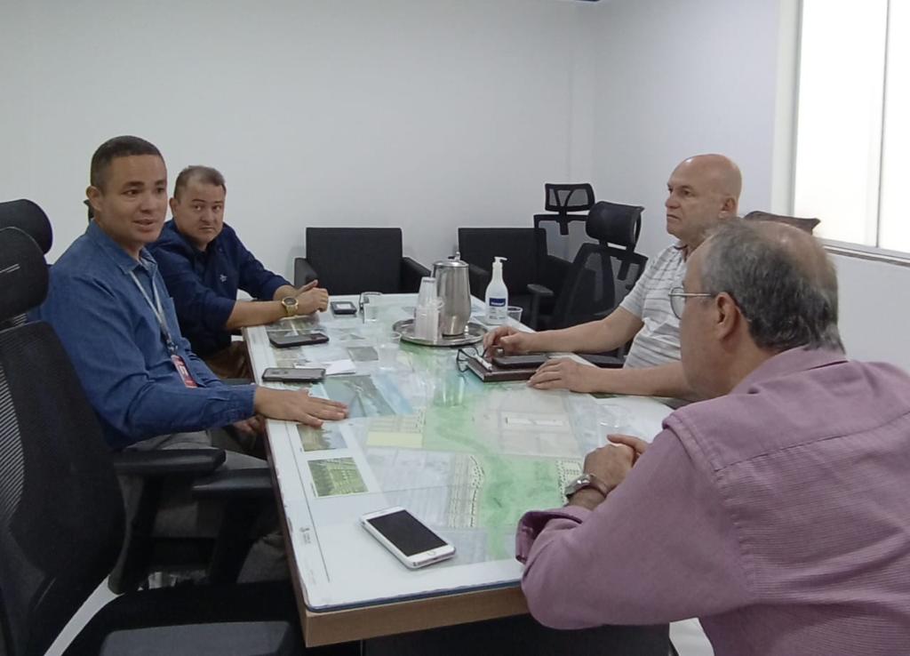 O secretário da SMDE, Marcos Ferreira, e o coordenador Paulo Williams receberam os gerentes Fábio Leal e Márcio Rezende, do Banco do Nordeste