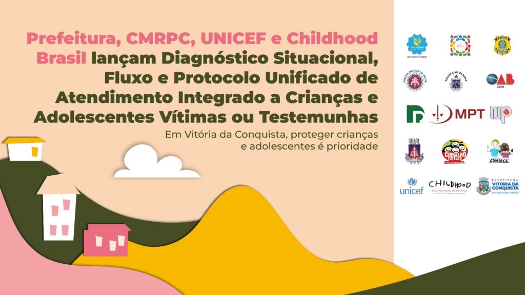 Nesta terça-feira, 12, a Prefeitura de Vitória da Conquista e o Comitê Municipal de Gestão Colegiada da Rede de Cuidado e de Proteção Social das Crianças e Adolescentes Vítimas ou Testemunhas de Violência (CMRPC), em parceria com o Unicef e a Childhood Brasil, realizam no auditório Lúcia Dória (Cemae), o lançamento de três documentos de diagnóstico, fluxo e protocolo que abordam o atendimento unificado de crianças e adolescentes vítimas ou testemunhas de violência.