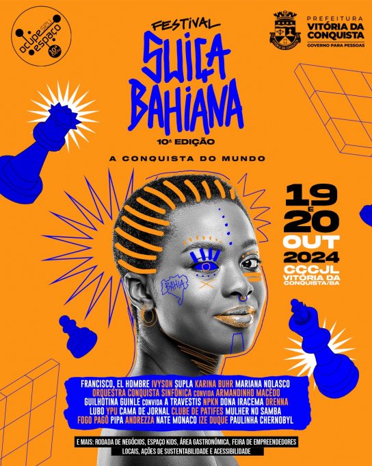 Neste sábado (19) e domingo (20) será realizada na concha acústica do Centro de Cultura Camilo de Jesus Lima, em Vitória da Conquista, a 10ª edição do Festival Suíça Bahiana (FSB). O festival é uma iniciativa do Coletivo Suíça Baiana, que conta com o apoio da Prefeitura para apresentar atrações do cenário da música independente brasileira e outras novidades para o público. A entrada é gratuita e pode ser adquirida CLICANDO AQUI.