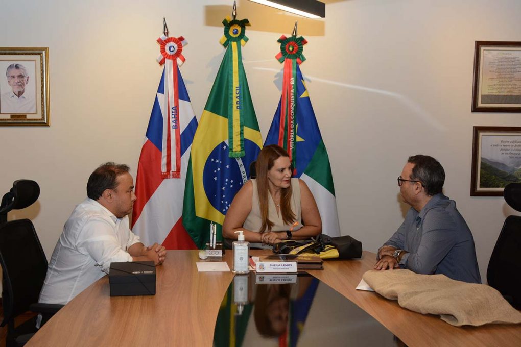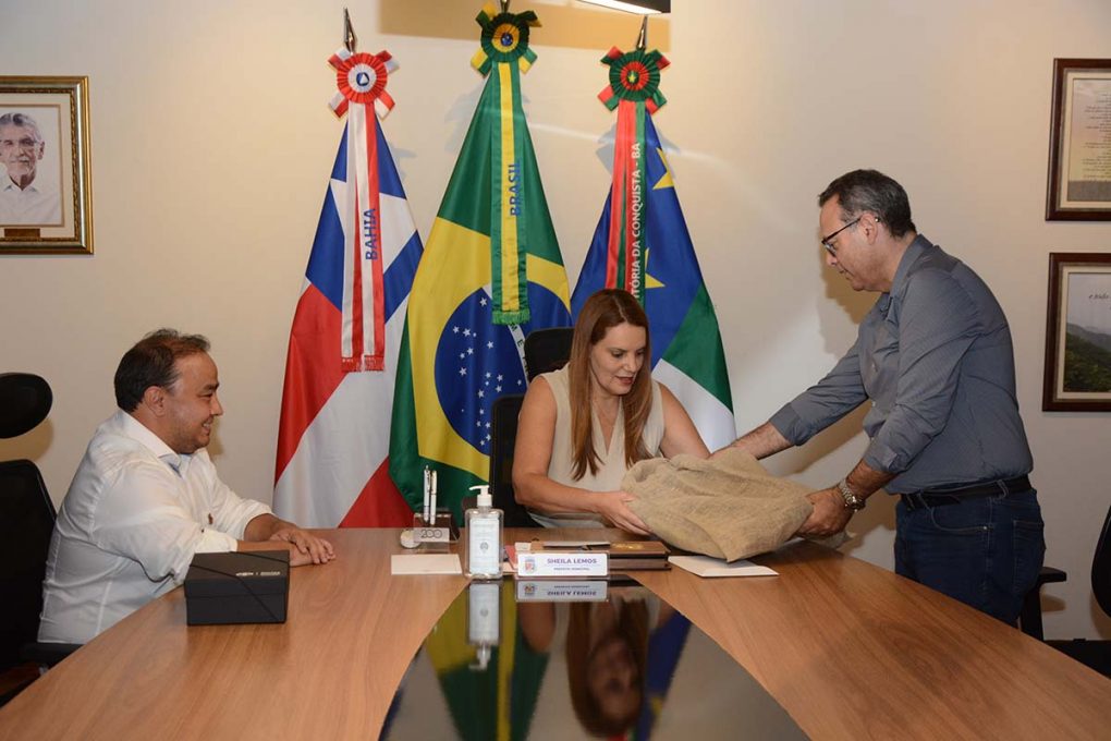 Para celebrar o plantio de 80 mudas de ipês em Vitória da Conquista, realizado por meio do projeto ambiental de uma empresa privada, a prefeita Sheila Lemos recebeu em seu gabinete, na tarde dessa segunda-feira (20), o diretor da concessionária de veículos Toyota Diamantina, Leônidas Cardoso. A visita foi acompanhada pelo secretário de Infraestrutura Urbana, Jackson Yoshiura.