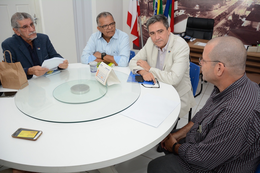 O prefeito Herzem Gusmão e os secretários municipais de Agricultura (Semagri) e do Trabalho, Renda e Desenvolvimento Econômico (Semtre), respectivamente, Gilmar Ferraz e Cláudio Cardoso, receberam na última quinta-feira (13), no Gabinete Civil da Prefeitura da Zona Oeste, o apicultor conquistense Jordan Ramalho, que trabalha há 28 anos na área.