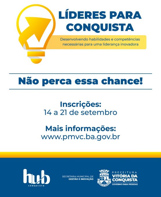 Com o objetivo de desenvolver e aprimorar as habilidades e competências dos servidores públicos para uma liderança inovadora, a Prefeitura Municipal, por meio da Secretaria de Gestão e Inovação, em parceria com o Hub Conquista, está promovendo o programa Líderes para Conquista.