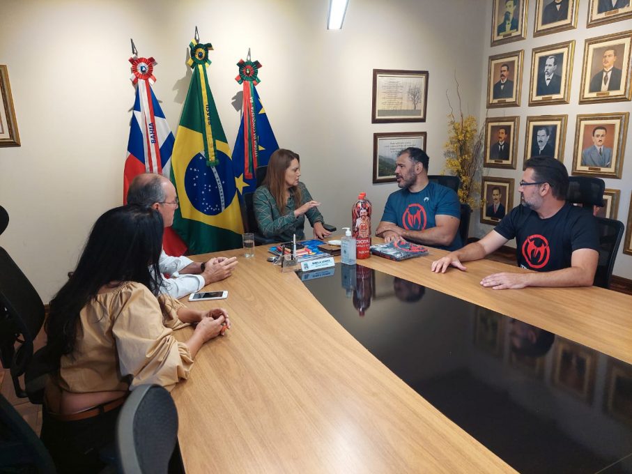 A ampliação do projeto “Esporte para Além das Fronteiras”, mantido em Vitória da Conquista por meio de uma parceria da Prefeitura Municipal com o Instituto Irmãos Nogueira, foi um dos assuntos abordados no encontro realizado na manhã desta quarta-feira (8), entre a prefeita Sheila Lemos, o ex-lutador Rogério Nogueira, conhecido internacionalmente como Minotouro, e o coordenador do Instituto Irmãos Nogueira na Bahia, Luciano Nogueira.