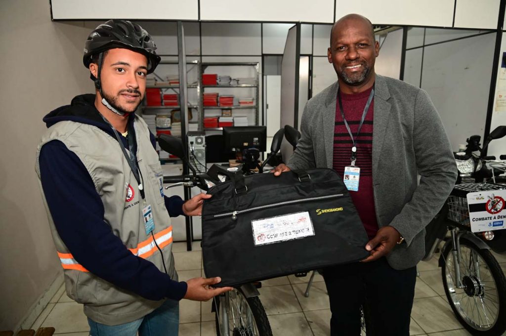 Foram entregues bicicletas elétricas, que irão facilitar o deslocamento dos técnicos pela cidade, além de kits com Equipamento de Proteção Individual (EPI) com capacete, coletes, crachás e outros itens.