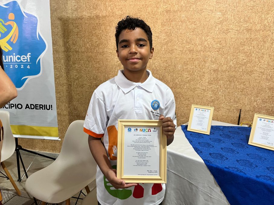 Todos os quatro conselhos receberam um poema escrito pelo integrante do Nuca, Éder Júnior, de 12 anos. Éder declamou o poema que escreveu e também falou sobre o trabalho dos conselhos. “Estamos aqui para homenagear pessoas importantes para a garantia dos nossos direitos. Eu, enquanto adolescente, me sinto muito feliz em saber que posso contar com quatro conselhos tutelares no município, que trabalham para evitar que as crianças e adolescentes que residem na cidade e também na zona rural tenham seus direitos violados”, ressaltou Éder.