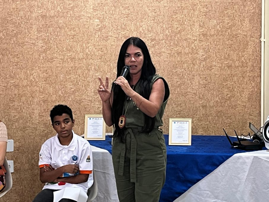 A conselheira tutelar da zona rural, Jocione Prado, participou da solenidade e agradeceu o reconhecimento, destacando que a luta continua, pois ser conselheira tutelar é um trabalho desafiador. “Enquanto conselheiros, nossa voz ecoa para garantir que os direitos de vocês sejam cumpridos. Estamos aqui por vocês e para vocês. Hoje é o nosso dia, mas todos os outros também são dias de muita luta para zelar pelos seus direitos”, afirmou a conselheira, em sua fala direcionada aos adolescentes do Nuca.