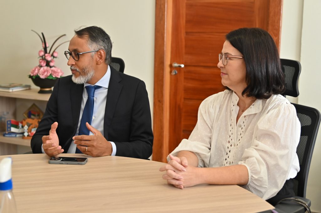 A prefeita Sheila Lemos e representantes das secretarias de Políticas para Mulheres, Gestão e Inovação e Desenvolvimento Social se reuniram com os juízes titulares da 1ª e 2ª Varas de Violência Doméstica, respectivamente, Alerson do Carmo Mendonça e Mirna Fraga, para discutir demandas e projetos que visam fortalecer a rede de cuidado e de proteção das mulheres de Vitória da Conquista, a exemplo da criação do comitê municipal que reunirá representantes dos serviços e órgãos que atendem o público feminino.