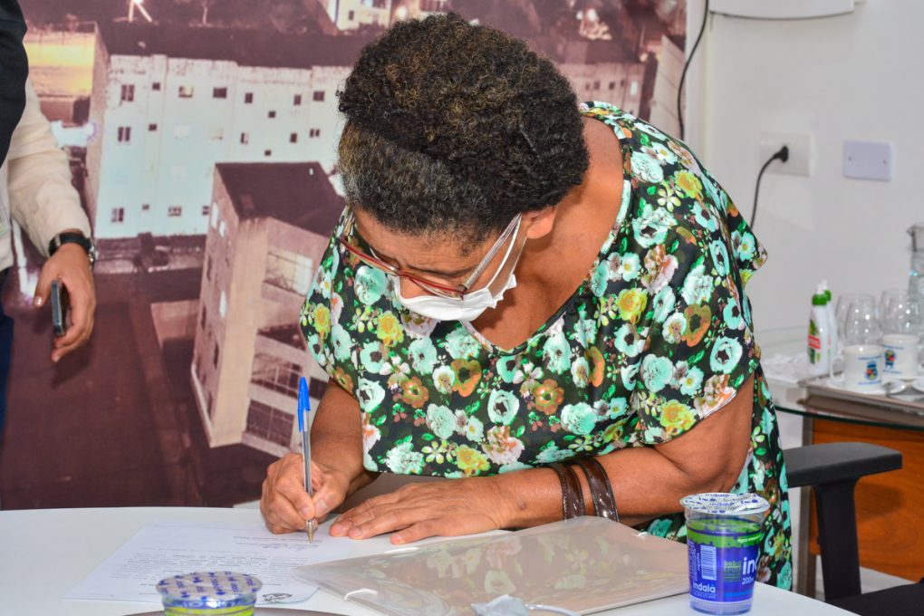 A prefeita Sheila Lemos entregou, em solenidade no gabinete da Prefeitura da Zona Oeste, na manhã desta terça-feira (14), as 119 barracas construídas na feira livre da Urbis VI. Membros da comissão de feirantes do bairro foram recebidos pela gestora para assinatura do Termo de Entrega. O encontro contou com a participação do secretário de Serviços Públicos, Luís Paulo Santos.