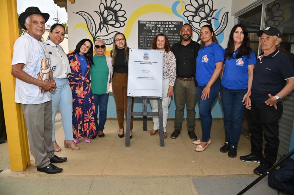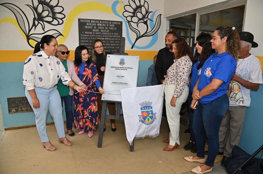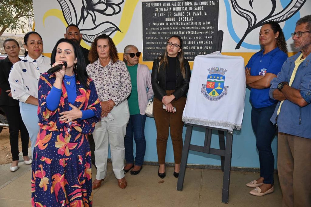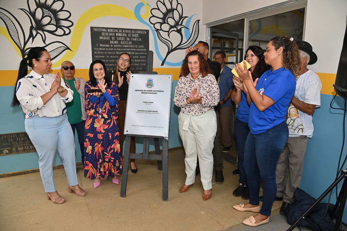 Nesta quinta-feira (22), a Prefeitura Municipal de Vitória da Conquista entregou a Unidade de Saúde da Família (USF) Bruno Bacelar aos moradores do bairro e profissionais da unidade. O evento contou com a participação da comunidade representada por Marcelo Alves, das equipes de saúde da unidade, das secretárias de Saúde e de Governo, respectivamente, Fernanda Maron e Geanne Oliveira, entre outros membros da equipe de governo.