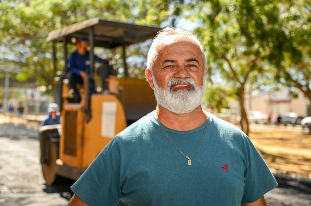 Foi com um sorriso no rosto e olhar atento, que o comerciante José Raimundo Ribeiro acompanhou, na manhã desta terça-feira (23), o início do reperfilamento na via coletora do bairro Urbis V, principal avenida da localidade, onde tem um comércio há mais de três décadas.