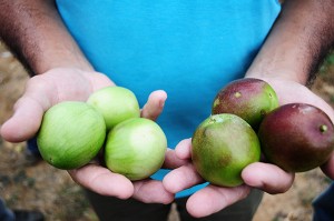 Outras experiências – A Fazenda Pedra Mole possui cerca de 10 hectares, onde, além do cultivo de 750 pés de umbu gigante, são desenvolvidos outros experimentos. Um exemplo curioso é uma planta que dá seriguela e umbu ao mesmo tempo. “Fizemos a mesma técnica de enxertia, mas com uma muda de seriguela em vez da de umbu gigante. Mas isso só é viável porque esses frutos pertencem ao mesmo gênero, spondias. Poderíamos ter adicionado até mesmo um terceiro fruto, o cajá”, explicou o técnico Dilermando Moraes.