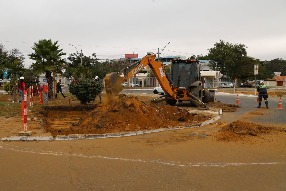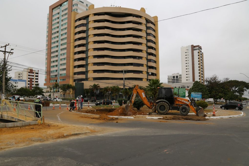 A Prefeitura de Vitória da Conquista já iniciou a demolição da rotatória entre as avenidas Olívia Flores e Luís Eduardo Magalhães, que dará lugar a um cruzamento com semáforos e sinalização de proibição de conversão à esquerda.
