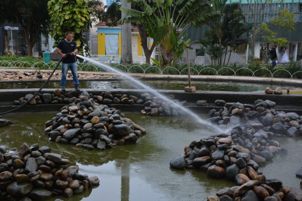 A Praça Tancredo Neves, um dos principais cartões postais da cidade, também está recebendo melhorias. Com o objetivo de retirar as algas e clarear o espelho d’água, preservando a vida dos peixes, a Semma está realizando uma ação de lavagem das pedras. “Neste ano, devido às chuvas, nós tivemos uma proliferação muito grande de algas, e os lagos ficaram túrgidos. Então, para a festa de Nossa Senhora, nós lavamos toda a parte de cascata, e agora estamos lavando a parte do lago”, explica a secretária de Meio Ambiente, Luzia Oliveira.