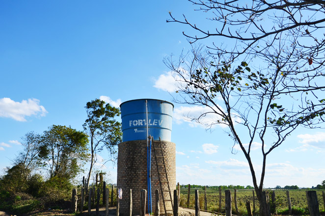 Afinal, hoje a comunidade local dispõe de um sistema simplificado de água, implantado há cerca de dois anos pela Prefeitura, por meio da Secretaria Municipal de Agricultura. O poço tubular tem 80 metros de profundidade e uma vazão de aproximadamente 3 mil litros de água por hora. A água vinda do poço é bombeada para uma caixa localizada bem ao lado da escola municipal do lugar. E, dali, através de encanamentos subterrâneos, é distribuída entre as residências de todas as famílias que não possuem cisterna própria.