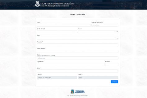 Para facilitar o acolhimento e dar ainda mais resolutividade às notificações de casos suspeitos de Covid-19, a Prefeitura de Vitória da Conquista lançou, nesta quinta-feira (5), um canal on-line de acesso para o cidadão fazer o autocadastro no sistema de controle e monitoramento de sintomas gripais, o Notifica Covid-19. O sistema, criado pela Secretaria Municipal de Saúde (SMS) e Núcleo de Tecnologia da Informação (NTI) da Prefeitura, já está funcionando.