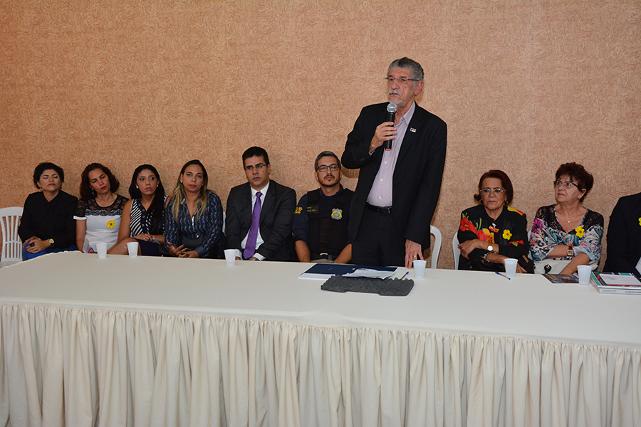 *Mesa de abertura: presidente do Conselho Municipal de Assistência social, Paula Varlanes, presidente do Conselho Municipal de Direitos da Criança e Adolesente, Leda Freitas, representante do Conselho Tutelar, Poliane Santos Santana, representante da Delegacia da Polícia Rodoviária Federal, José Machado Ramalho, delegada da DEAM, Decimária Cardoso, promotor da Infância e Juventude, Marcos Coelho, assessora da Secretaria Municipal de Educação Celma Maria de Oliveira, coordenadora da Rede de Atenção à Criança e ao Adolescente, Camila Fisher, diretor de Assistência Social, Michael Farias, vice-prefeita e secretária de Desenvolvimento Social, Irma lemos, prefeito Herzém Gusmão.