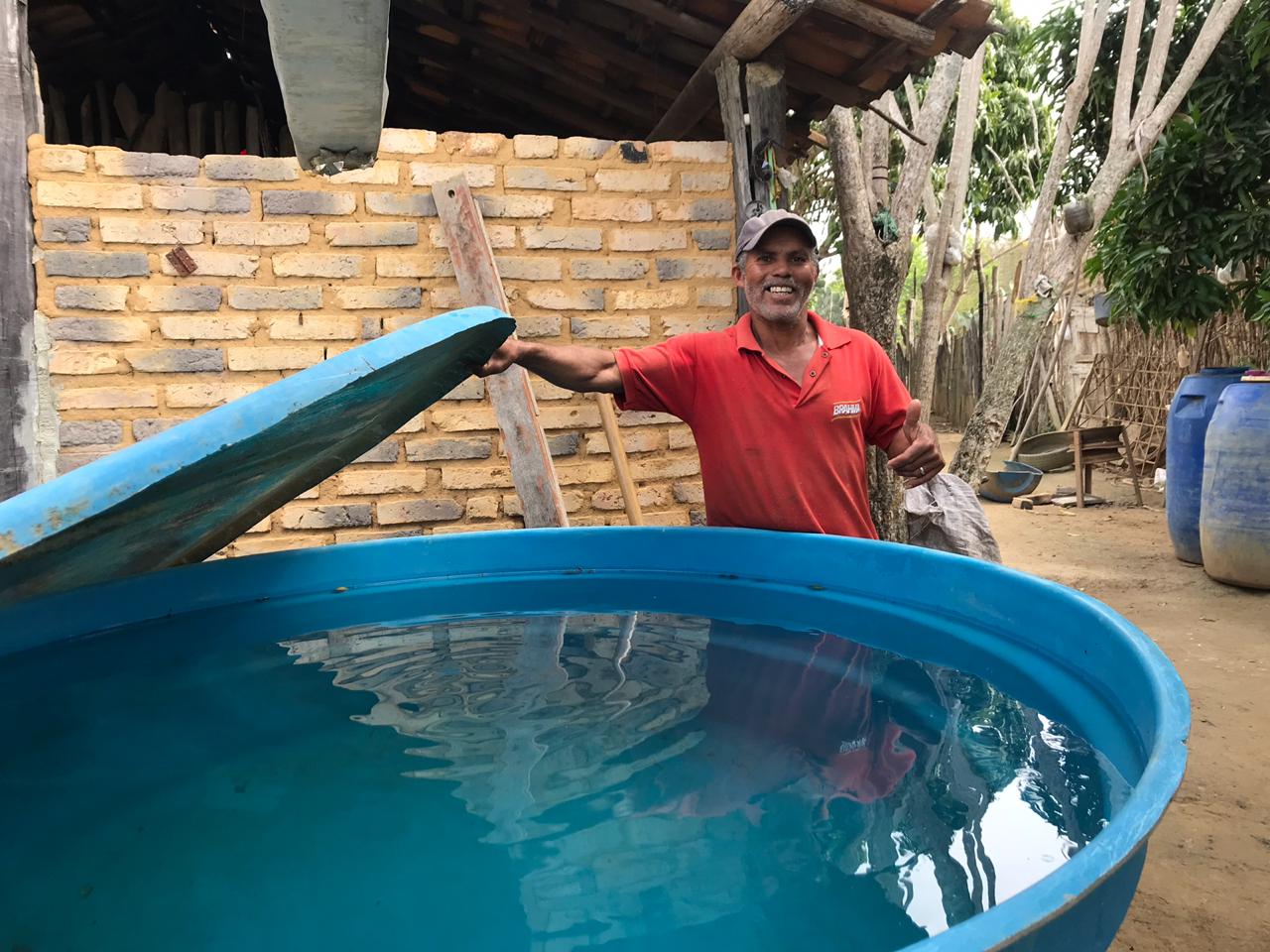Gilberto da Silva comemora a chegada da água em Lagoa de Melquíades