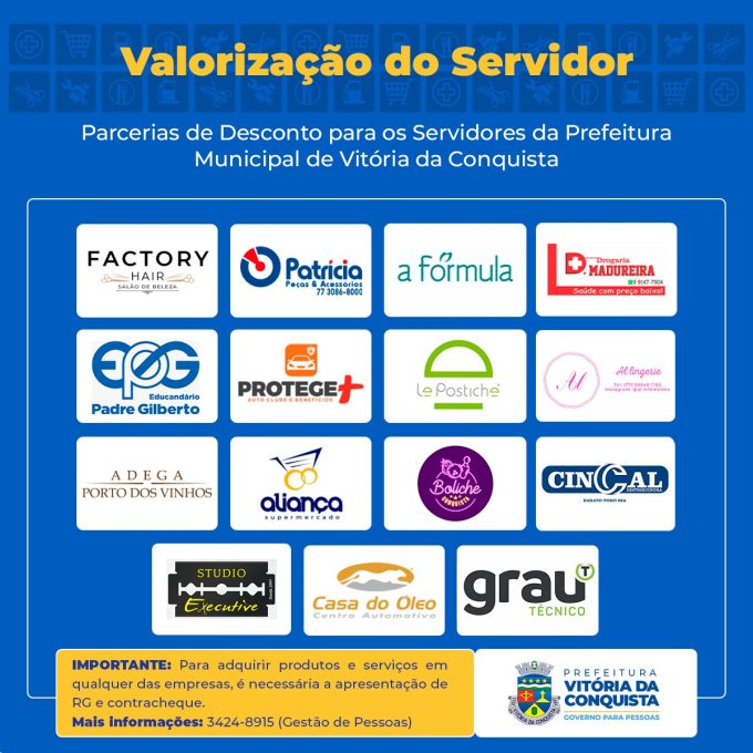 Por meio do programa Companhia do Desconto, os servidores municipais de Vitória da Conquista dispõe de uma série de benefícios oferecidos mediante parcerias firmadas pela Prefeitura, através da Secretaria de Gestão e Inovação (Semgi), com empresas privadas, para proporcionar descontos na aquisição de produtos ou serviços em estabelecimentos comerciais da cidade. O objetivo é contribuir para a melhoria da satisfação e motivação do funcionalismo, e da melhoria da sua qualidade de vida.