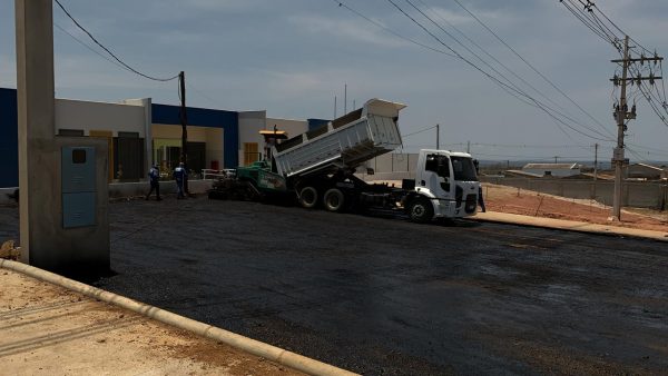 Nesta segunda-feira (21), máquinas e homens da Secretaria de Mobilidade Urbana trabalham na pavimentação asfáltica das áreas de embarque e desembarque de alunos, estacionamento com vagas para 17 carros e 9 motos e via de acesso. Cerca de R$ 127 mil de recursos próprios foram investidos.