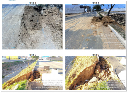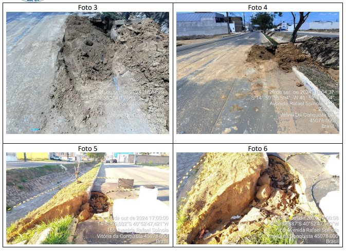 Preocupada com a situação, no último dia 24 de outubro, a Prefeitura de Vitória da Conquista, por meio da Secretaria Municipal de Infraestrutura Urbana (Seinfra), notificou a Embasa e exigiu que a empresa reparasse os danos causados à via pública, com a reconstrução do meio fio, sarjeta, talude do canal e pavimento em concreto asfáltico.