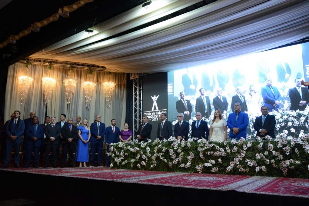 Como parte da programação festiva pelos 183 anos de emancipação política de Vitória da Conquista, a Câmara Municipal promoveu na noite desta terça-feira (7), a Sessão Solene de entrega do Título de Cidadão Conquistense a 45 pessoas que não nasceram no município, mas o adotaram e foram adotadas como filhos e filhas desta terra. Presente na cerimônia, a prefeita Sheila Lemos recepcionou os novos cidadãos conquistenses que tanto têm contribuído para o desenvolvimento do município.