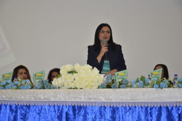 A diretora da escola Maristela Rocha Borges recepcionou os convidados do lançamento da 9 edição da Eco Kids