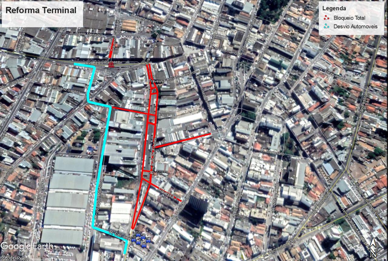 As linhas de ônibus coletivo que faziam o embarque e desembarque de passageiros no Terminal passam a operar, em sua maioria, na Avenida Régis Pacheco, como também na Avenida Crescêncio Silveira. Na tarde desta terça-feira (31), equipes da Secretaria Municipal de Mobilidade Urbana estiveram no Centro da cidade preparando as vias.
