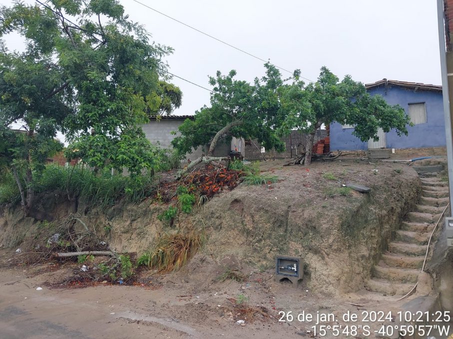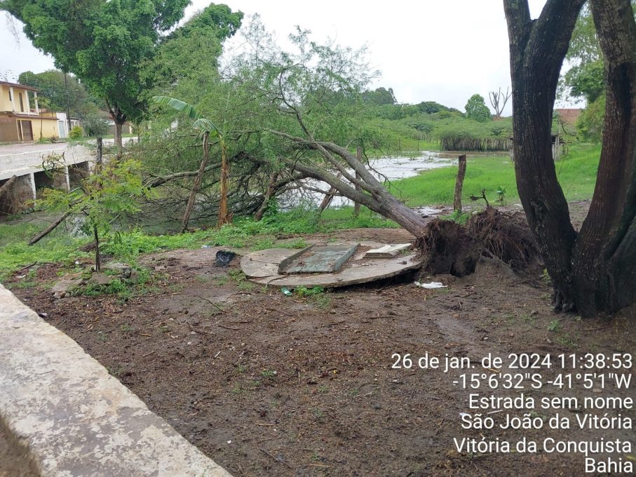 Em Dantelândia, a Defesa Civil verificou ocorrências de queda de árvores e pontos de escoamento obstruídos que resultaram no alagamento da rua do cemitério local. Já em São João da Vitória, houve queda de árvore próximo ao canal e a Defesa Civil notificou a necessidade de retirada de uma família em situação de risco.