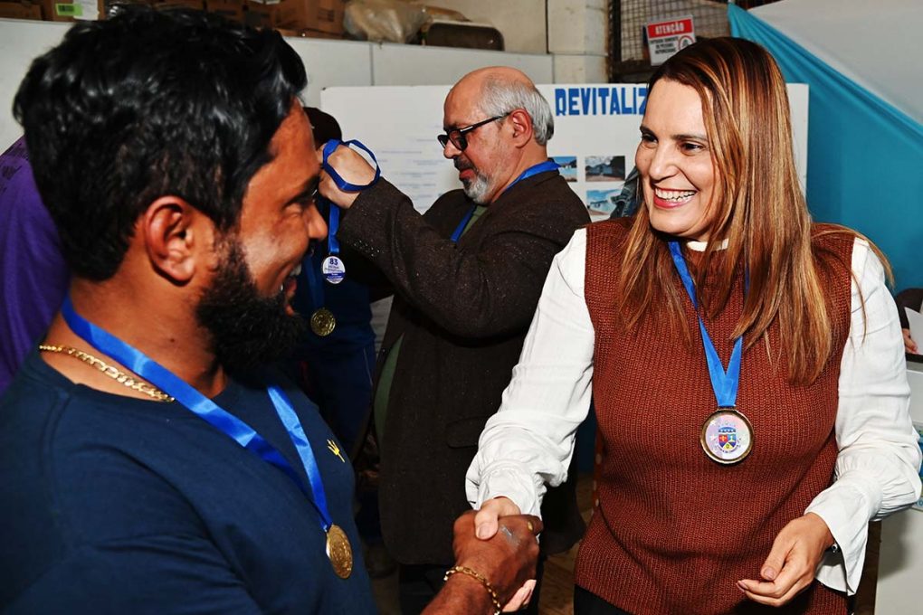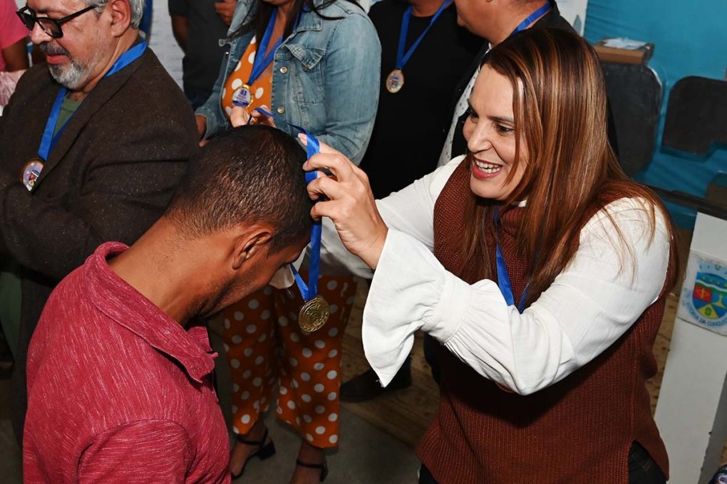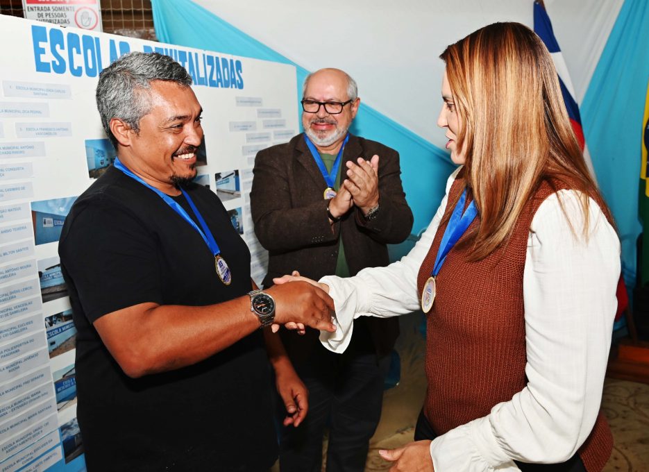 No local onde está situada a Gerência, a prefeita Sheila Lemos participou da homenagem e entregou aos servidores medalhas que simbolizam a gratidão de todo o município pelo trabalho realizado por eles. “Tenho plena convicção de que a educação transforma, e essa equipe é uma das responsáveis por tornar nossa cidade melhor por meio da educação. Cuidar de nossas crianças e adolescentes também passa pela qualificação e valorização de nossos servidores”, declarou a prefeita.
