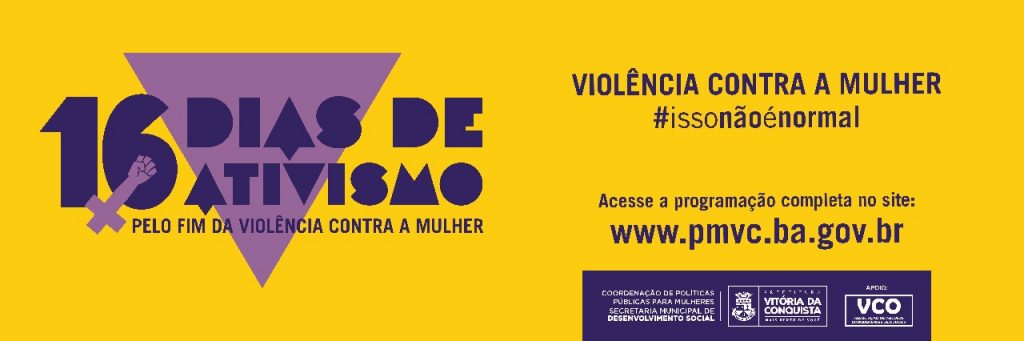 Do período de 20 de novembro a 10 dezembro, a Prefeitura de Vitória da Conquista, por meio da Coordenação de Políticas Públicas paras as Mulheres e do Centro de Referência da Mulher Albertina Vasconcelos (Crav), realizará uma programação voltada às discussões sobre a situação da violência contra mulher no município.