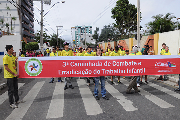 Em meio ao clima de Copa do Mundo e de Dia dos Namorados, a Prefeitura de Vitória da Conquista chamou a atenção da sociedade para outro assunto relacionado ao dia 12 de junho, o Dia Mundial de Combate ao Trabalho Infantil. Como acontece há três anos, programas de proteção às crianças e aos adolescentes do município promoveram, na manhã dessa quinta-feira, uma caminhada com o objetivo de conscientizar toda comunidade para a importância deste tema. Durante a ação, o público pode prestigiar apresentações artísticas como hip hop, percussão, capoeira.