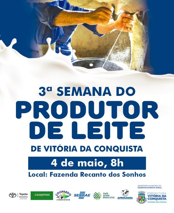 Os produtores de leite de Vitória da Conquista têm um encontro marcado neste sábado (4): a 3ª edição da Semana Municipal do Produtor de Leite, promovida pela Prefeitura, por meio da Secretaria Municipal de Desenvolvimento Rural (SMDR).